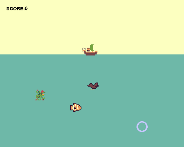 You must avoid obstacles such as other fish, seaweed, fishermen, and birds using WASD.